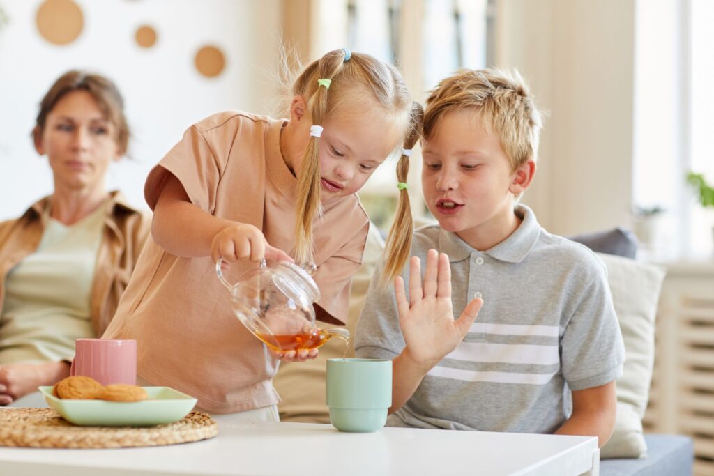 はじめは先生と1対1から。徐々に友達とのつながりを広げていきます。